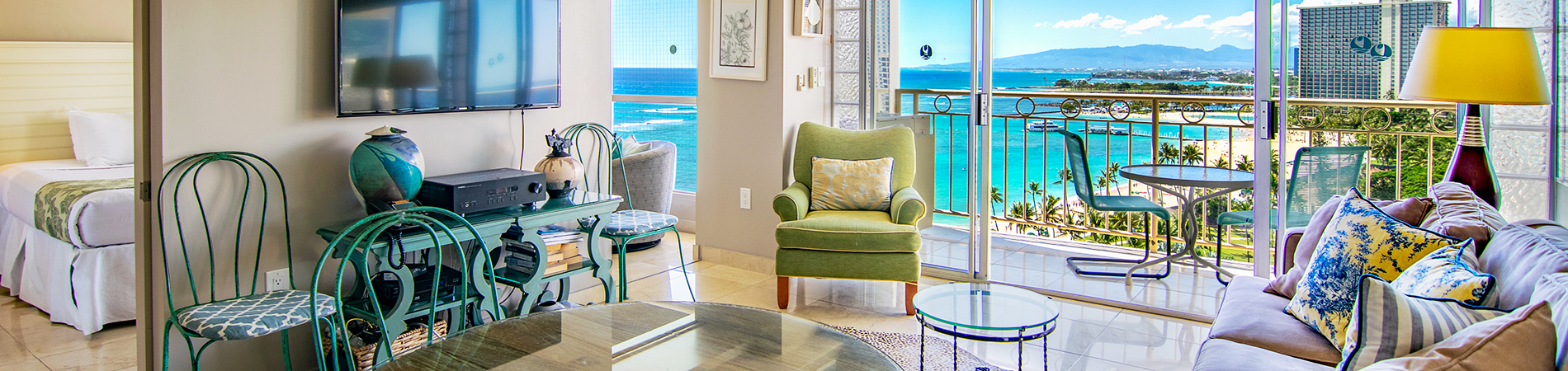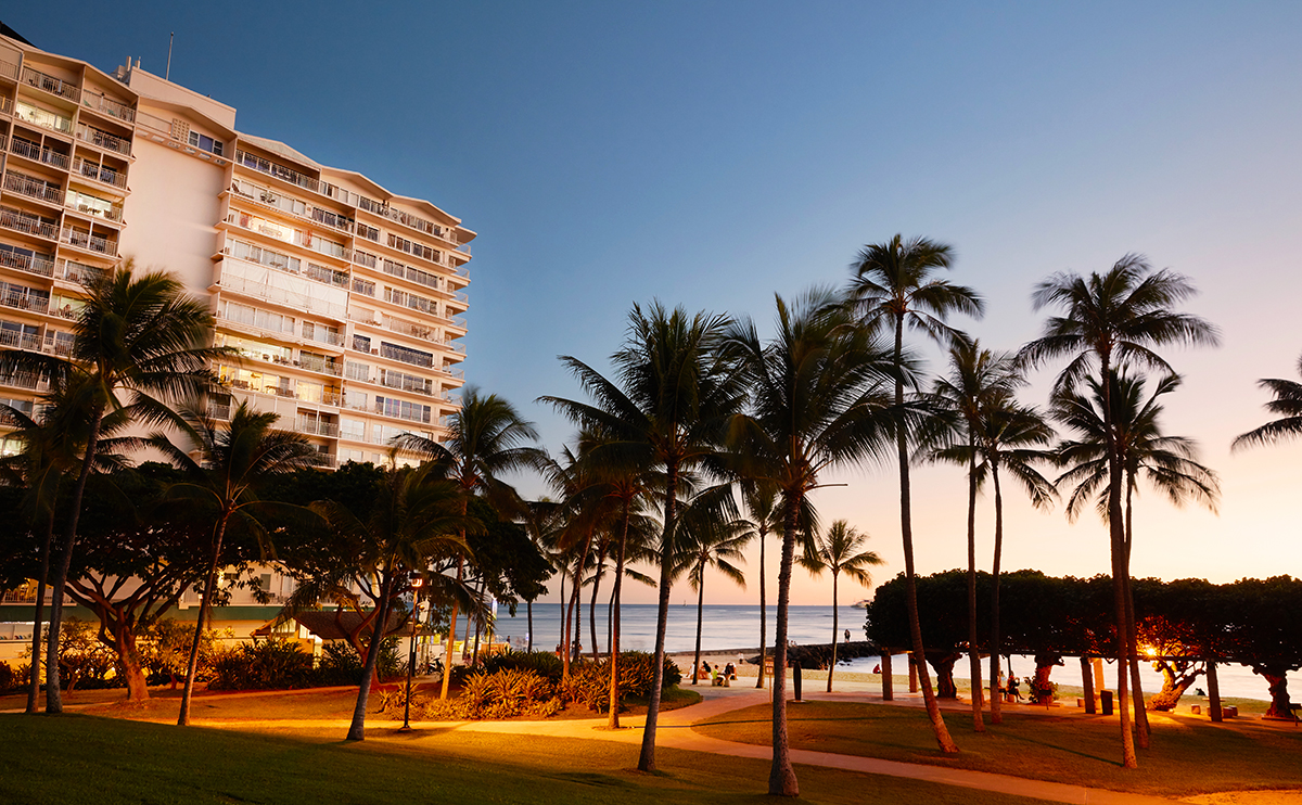ワイキキのビーチフロントに建つ、唯一のコンドミニアム。ワイキキビーチが目の前という最高のロケーションで、バケーションを存分に楽しめます。客室は、有名なダイヤモンド・ヘッドからオアフ島の西海岸線までを一気に見渡せる、ステューディオ、1ベッドルームスイート、2ベッドルームスイートの3種類。隣接するアウトリガー・リーフ・ワイキキ・ビーチ・リゾートのプールを利用できます。
