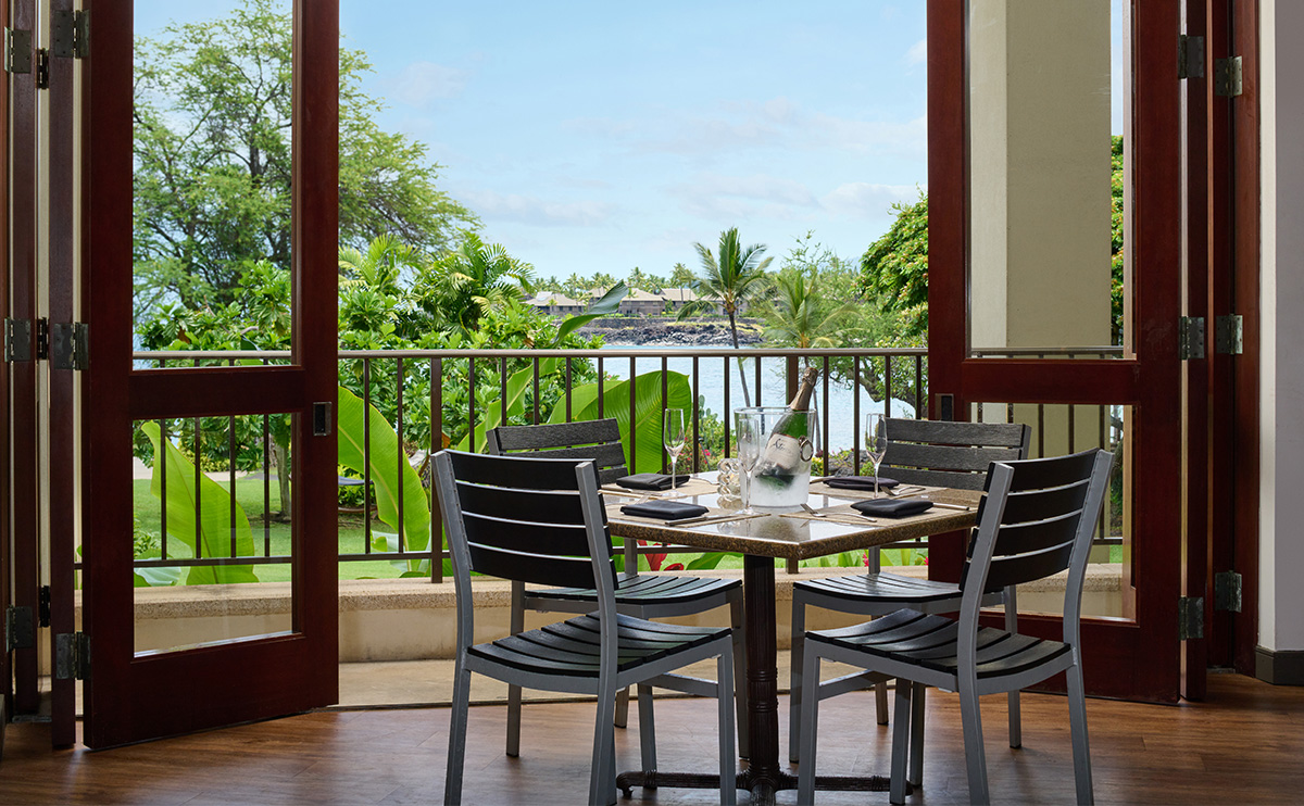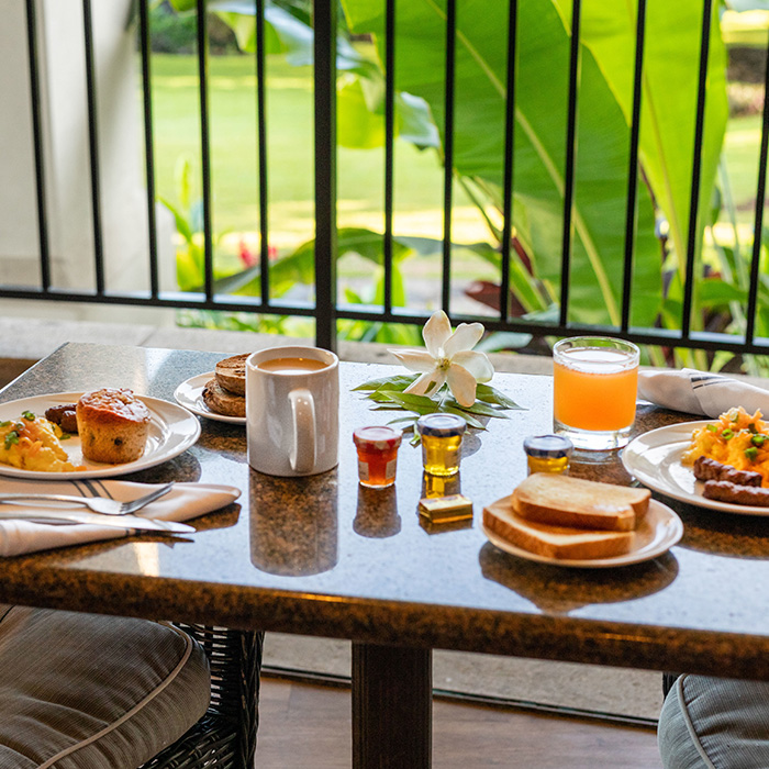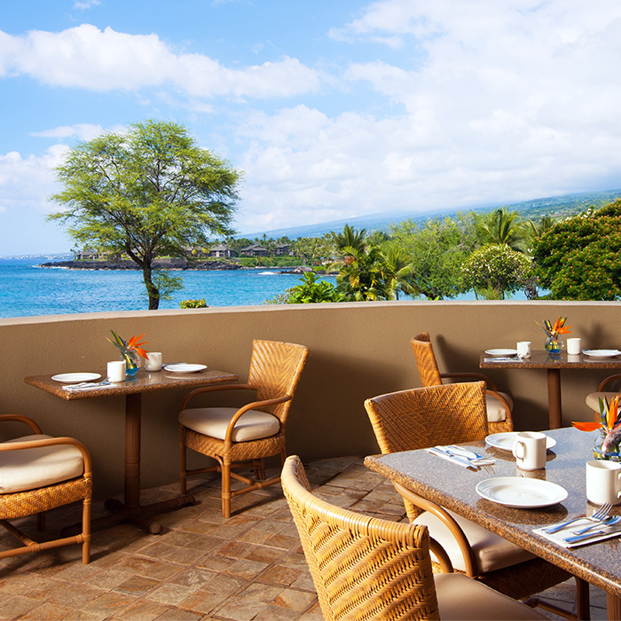 リゾートの中心に新しくオープンしたレストラン。厳選したコナコーヒーとワイン、自家製カクテル、各種生ビールをお楽しみいただけます。地元産の新鮮な食材をふんだんに使ったお料理もご用意しております。