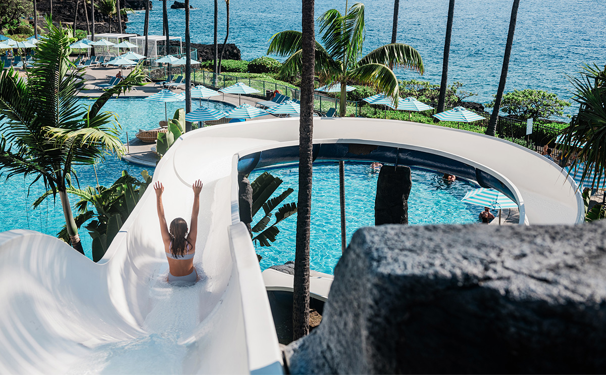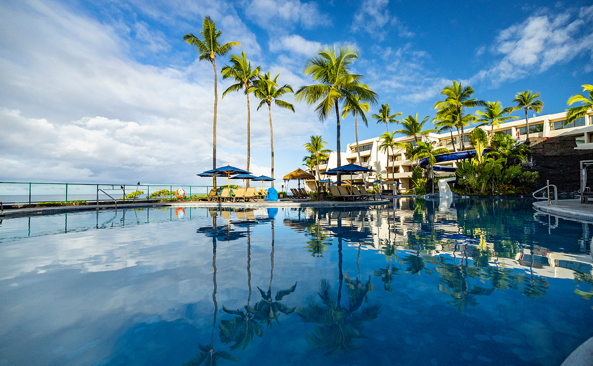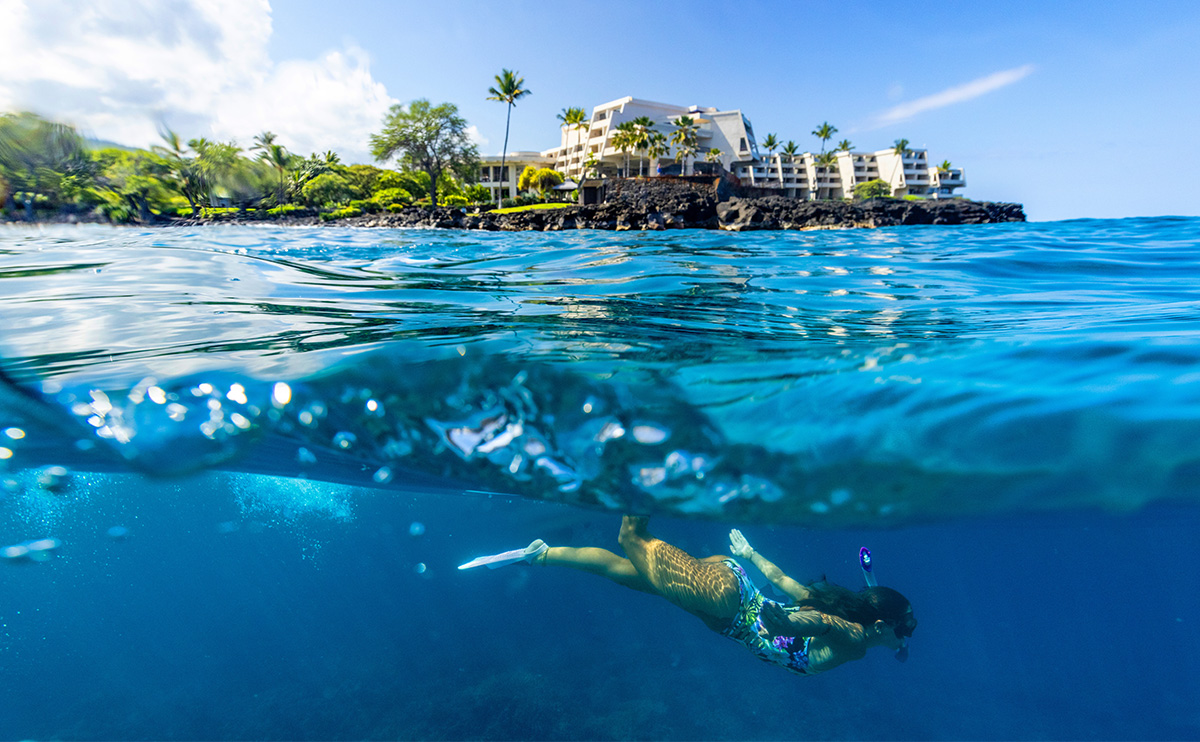 コナ・コーストの緑豊かな南端にあるケアウホウ・ベイに建つアウトリガー・コナ・リゾート&スパ。海やサンセットの眺めはもちろん、リゾート近くまで訪れるマンタとの出会いも楽しめます。リゾート内には、子供用のサンドビーチプールやウォータースライダーもあるプールエリア、メニュー豊富なスパなど、施設も充実。世界で唯一、巨大なマンタを見ることができるリゾート前の海で、マンタと一緒に夜の海をシュノーケリングしたり、ハワイ島大自然や文化を満喫するプログラムもご用しております。