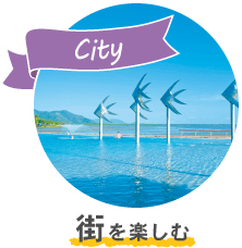 プールで泳ぐ観光客など、のびのびとした魅力の街を楽しもう♪