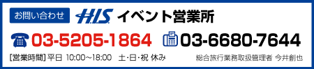 お申込みは、H.I.S.イベント営業所のみの受付となります。
