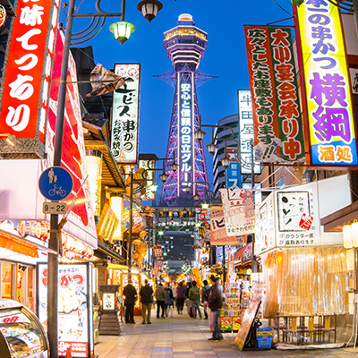 関西屈指の大都市・大阪。今でも商人文化が根付いており、おもてなし精神に溢れていると言われています。うまいもんがそろう大阪は「食い倒れ」の街としても有名。たこ焼きやお好み焼きなどの粉もの文化が独自の進化を遂げています。ビリケンさんでおなじみの「通天閣」、日本一の高さを誇る「阿倍野ハルカス」、映画やゲームの世界に浸れる大人気のテーマパークなど子供から大人まで楽しめる観光スポットも充実しています。