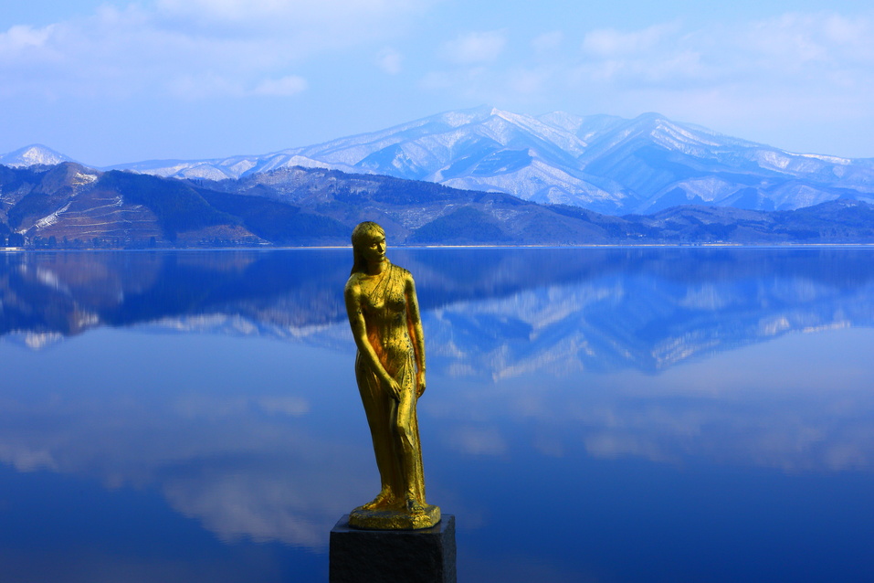 田沢湖とは、日本一の深さを持つ湖で水深は約423.4メートルあるほぼ円形の湖です。見どころは美しい瑠璃色の湖面で、特に冬の時期は周辺に雪が積もりより一層幻想的な風景を魅せてくれます。
