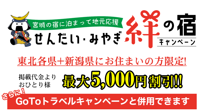 せんだい・みやぎ絆の宿キャンペーンは終了いたしました。