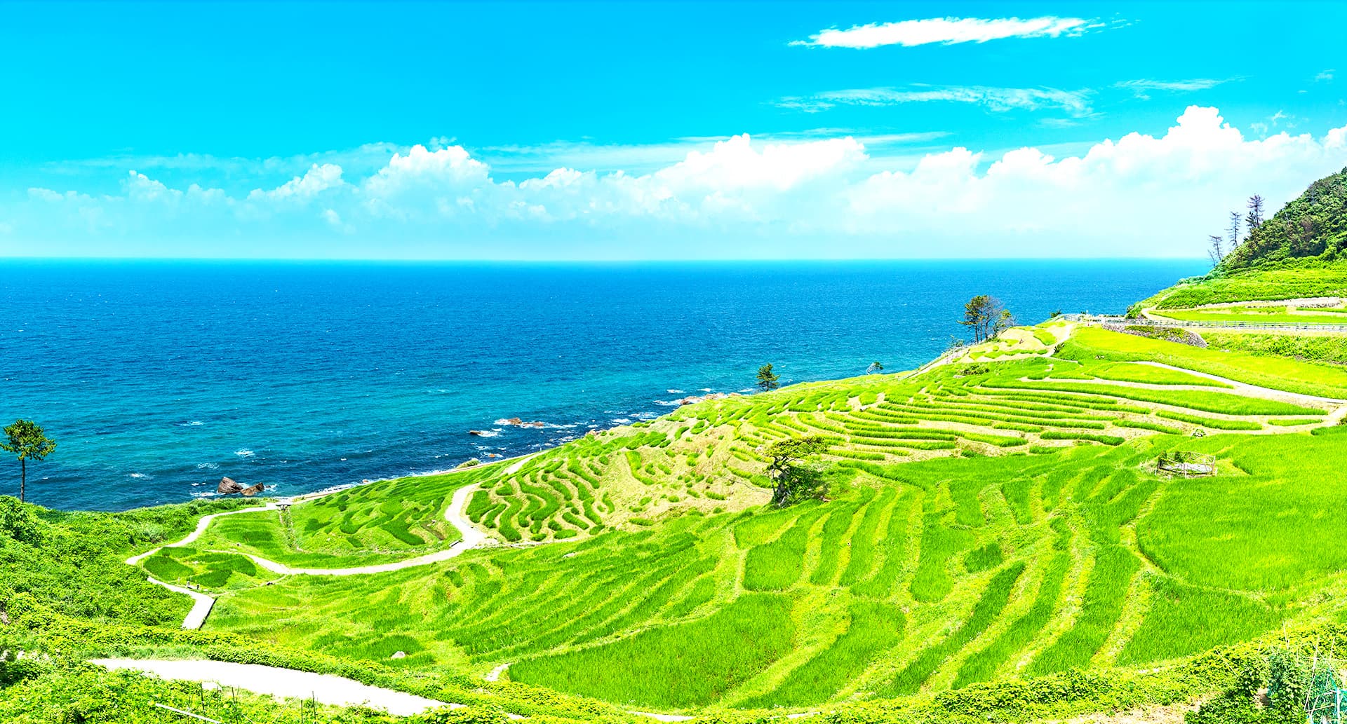 石川県の北半分を占める能登半島には、海沿いの斜面に広がる「白米千枚田」や日本で唯一波打ち際の約8kmのドライブが楽しめる「千里浜なぎさドライブウェイ」があり、自然豊かでのんびりした時間を過ごすことができます。輪島には1000年以上の歴史がある朝市があり、毎日多くの人で賑わっています。 また、伝統工芸の輪島の漆器も有名でお土産にぴったり。