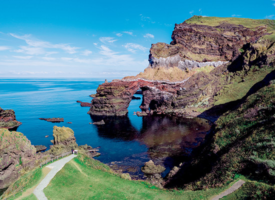 - まるで外国のような雄大な自然を体感できる国賀海岸の一部、摩天崖は隠岐ユネスコ世界ジオパークを代表する景観に圧倒されます。