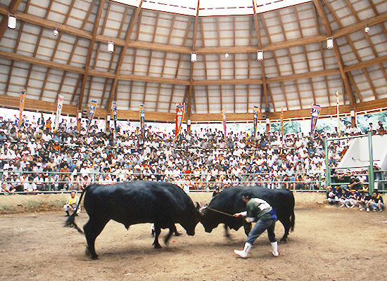 - 隠岐の牛突きは800年あまり続く伝統文化であり、日本最古の闘牛。隠岐モーモードームでは観光牛突きを目の前で見学できます。