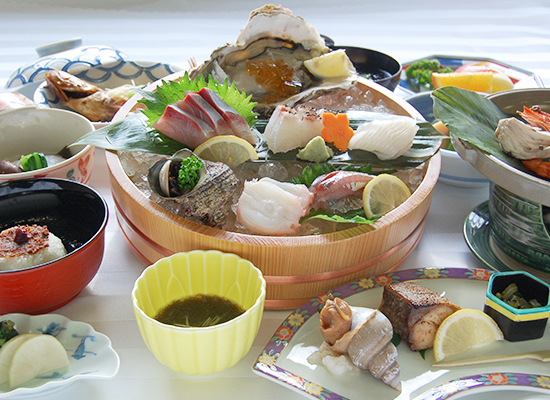 - 海に囲まれた隠岐は、牡蠣やサザエなど新鮮な海の幸が豊富。寒シマメ肝醤油漬けや、焼いた鯖やアゴで出汁をとった隠岐そばも隠岐に欠かせない郷土料理。