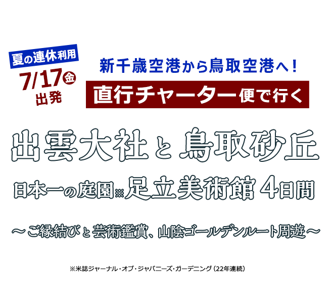 直行便の定期運航のない鳥取へ乗り継ぎなしの直行チャーター便で、ひとっ飛び!