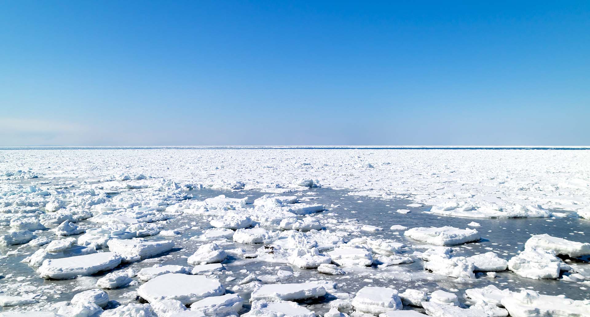 - 1月下旬頃、その白く神秘的な姿をオホーツク沿岸に見せます。毎年2月中旬から3月上旬ごろが流氷を見られる確率が高い時期ですが、年々流氷が減少傾向にありますので、過去のデータが参考にならなくなってきております。