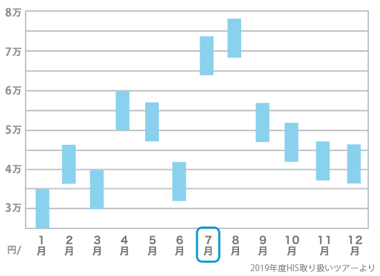 連休や夏休みに入る7月の後半は、旅費は一気に上がります。可能であればラベンダーも見頃である上旬がおすすめです。3日間のツアーだと、平均して6~7万円は見たほうがよいところですが、7月の初旬で、札幌や函館の1都市あれば5万円以内で探すこともできます。