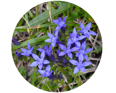 北海道のみに分布する高山植物。直径1cmほどの青紫色の花を咲かせます。