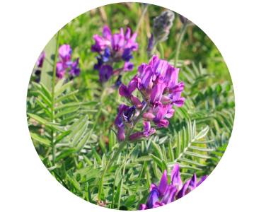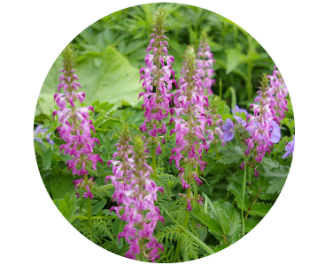 日当たりのいい斜面に生息する高山植物。薄紫色の花を10数段輪生に咲かせます。