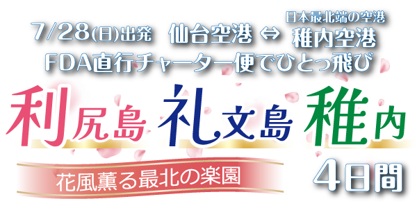 フジドリームエアラインズ直行チャーター便で行く 利尻島・礼文島・稚内ツアーは販売終了しました。