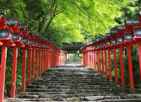 水源の神「高龗神(たかおかみのかみ)」を御祭神とし、古くは「氣生根(きふね)」とも表記。そのご神氣に触れるだけで元氣が蘇るとか。「結びの神」として、平安時代より良縁を願う参拝者が絶えません。