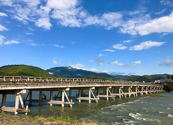 嵐山の四季折々の風景に溶け込み常に人々を魅了し続ける有名スポット。夜にライトアップする光は、桂川の流れを利用したミニ水力発電による電力を利用し、環境先進都市京都のエコな取り組みの1つです。