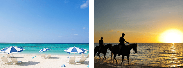 「星のや沖縄」が面する読谷村の西海岸には、美しいビーチが点在しています。波音に包まれながら美しい夕日が沈む様子を眺める時間は、格別のひとときです。敷地前には、表情豊かなサンゴの海を静かに眺められる手つかずの自然の海岸が広がり、近隣に点在するビーチでは、透明度の高い海で海水浴をお楽しみいただけます。