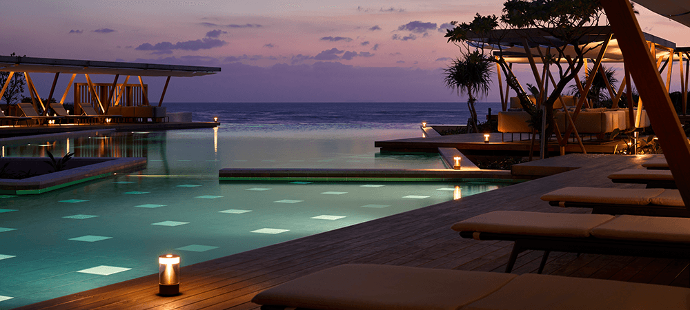 まるで庭の中に何枚もの水盤が配されているように広がる、個性的な遊び場を一年中24時間ご利用いただけます。プールサイドでお寛ぎいただけるラウンジの他、水上のステージや、お子様でも楽しめるエリアがございます。海にせり出すように作られた奥のプールは、夕暮れ時にサンセットを眺める特等席です。その他、沖縄で暮らしているような感覚にスパイスを加える様々なアクティビティがあります。