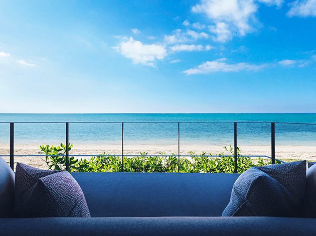 那覇空港から車で1時間。「その瞬間の特等席へ」をブランドコンセプトに、澄んだ空の下、600メートルにわたる自然の海岸線に沿って星のや沖縄はあります。沖縄の史跡「グスク」にインスピレーションを得てデザインされた「グスクウォール」に囲まれたリゾートで、豊かな自然を感じながら「海を眺めて暮らすような体験」をご提供します。