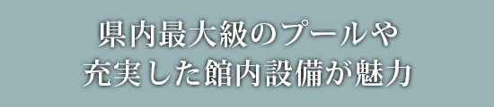 2つのスライダーが設置されたラグーンプールは県内最大クラス。スロープ付き水深1mのプールエリアがあり、小さなお子様も安心して遊ぶことができます。一年中楽しめる屋内の温水プールは季節を問わず南国の雰囲気を存分に満喫いただけます。