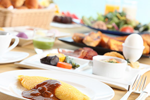 気分に合わせて洋食・和食・和洋ビュッフェより選べるこだわりの朝食。特に洋食「ベルデマーレ」のオムレツは絶品。