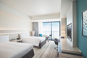 沖縄のテイストを基調としたインテリアデザインと自然の風と光が感じられる客室。開放的なセパレートタイプのバスルームとヒルトンならではの上質なアメニティーをご用意。ゆったりとしたリゾートステイをご堪能いただけます。