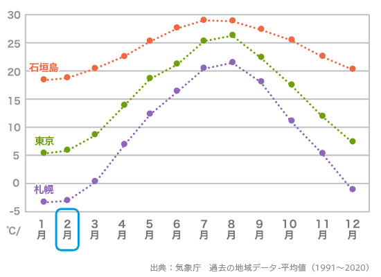 | 石垣島 | 24.5℃ | 27.2℃ | 22.4℃ |
