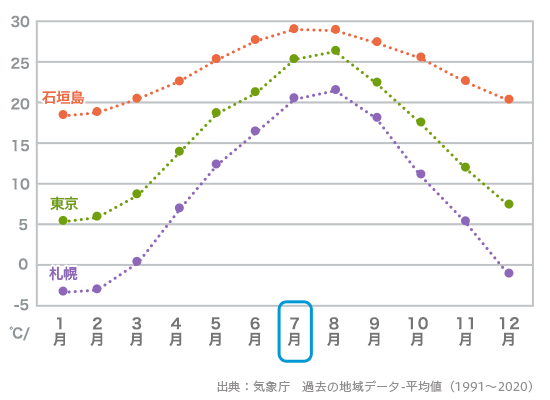 | 石垣島 | 24.5℃ | 27.2℃ | 22.4℃ |