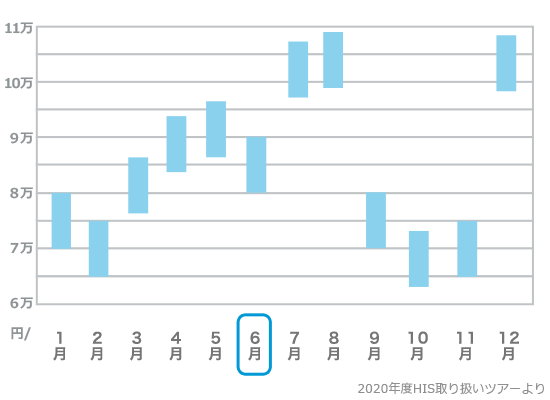 梅雨明け後は気持ちのよい晴れ空が続きます。夏休み前なこともあり、観光客は少なめ。旅費も抑えられるので、ゆっくりと良い気候の中観光をするにはベストなシーズンといえるでしょう。