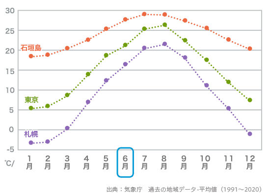 | 石垣島 | 24.5℃ | 27.2℃ | 22.4℃ |