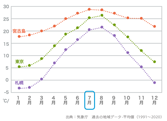 | 宮古島 | 23.8℃ | 26.4℃ | 21.9℃ |