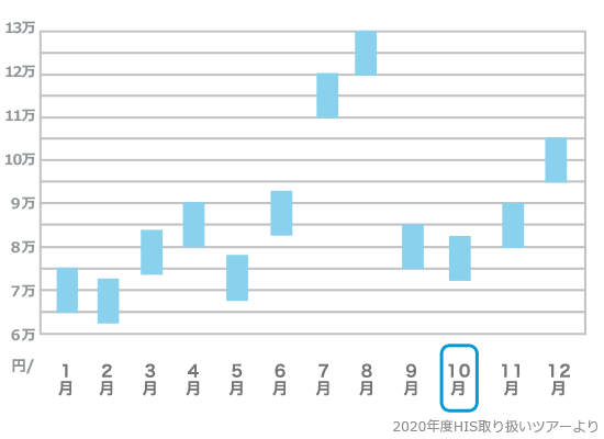 9月よりもさらに平均して数千円は下がり、オフシーズンに入っていきます。2022年からはスポーツの日が復活するため、その前後は旅費は上がるでしょう。 10月とはいえ、宮古島はまだまだ夏の気候。台風も減ってくるため、旅費を抑えつつ夏の雰囲気も楽しみたい方には最高のシーズンとなるでしょう。