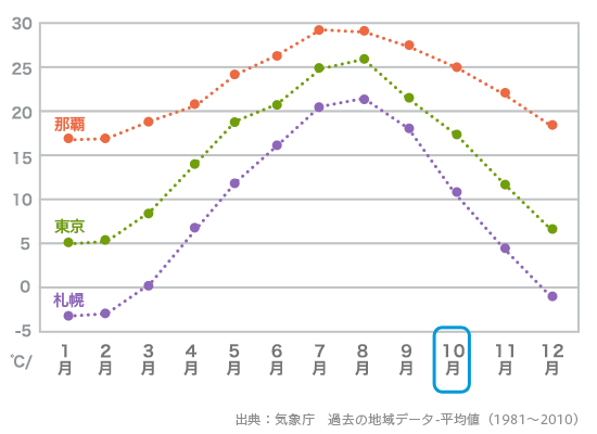 まだまだ残暑は残るものの、日差しは弱まり平均気温も25℃程度に落ち着きます。台風が接近する数も徐々に減り落ち着いて過ごせる季節です。