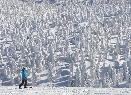 蔵王・八幡平と同じくアオモリトドマツが広く分布し、素晴しい樹氷をつくります。怪奇・神秘の境として有名。樹氷は冬季(11月中旬~2月)に見られます。