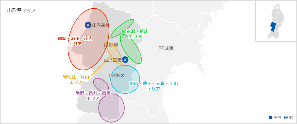 - 山形エリアの主な空港は?