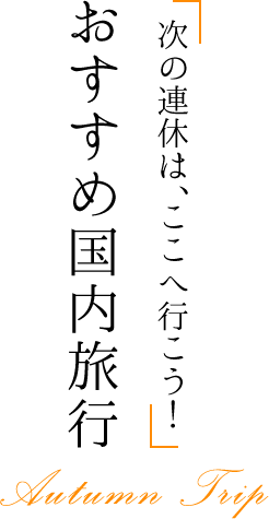 次の連休は、飛行機にのってちょっと遠出してみませんか?気ままな1人旅でリフレッシュするのもいいけど、誰と旅行するかで旅のプランを考えてみるのもおすすめです。それぞれのスタイルに合わせた旅のプランをちょっとだけご提案!友達を誘って、親子でゆっくり「次の連休は、ここへ行こう!」