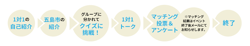 1対1トーク (各ペア6分ずつ)最終のマッチング投票記入(第3希望まで) その後アンケート回答11:20