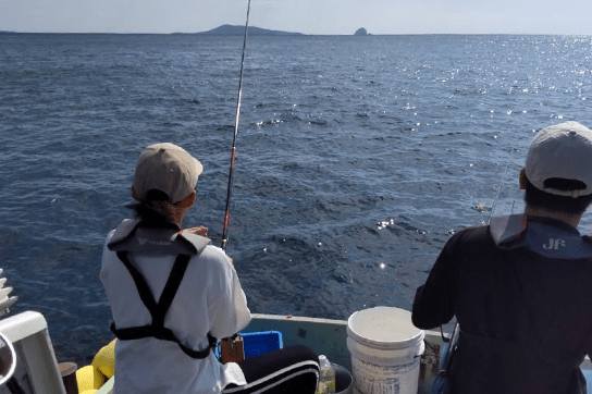 男女ペアに分かれ、船の乗って釣り体験トイレ休憩、希望の方はスーパーで必要なものを購入五島の美しい海で釣り体験!男性陣は腕の見せ所!17:00