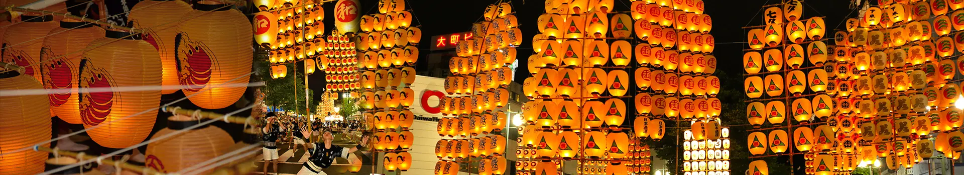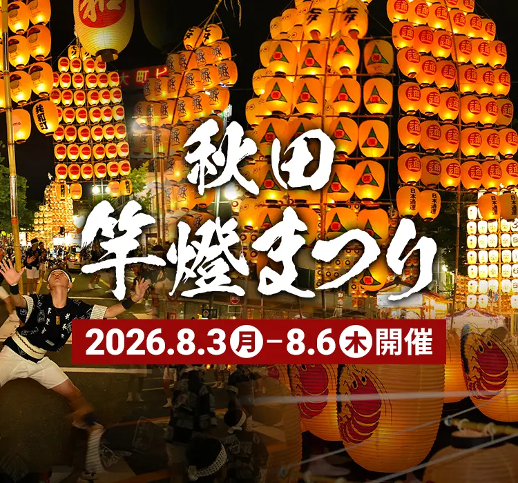 東北三大祭りのひとつで、国の重要無形民俗文化財にも指定されている秋田竿燈まつり。毎年100万人以上が訪れる秋田を代表する夏祭りです。竿燈の起源は、旧暦7月の盆行事である「眠り流し」にあると言われています。笹竹などに絵馬や願い事を書いて吊るして子どもたちが町を練り歩き、川に流して夏の睡魔、けがれや悪霊を流し去り、祖霊祭祀、無病息災、家内安全を祈る行事で江戸時代中期が起源と言われています。1921年には秋田市竿燈会が組織され、秋田特有のまつりとして人気が高まりました。 近年では海外公演も行うなど精力的に活動しています。