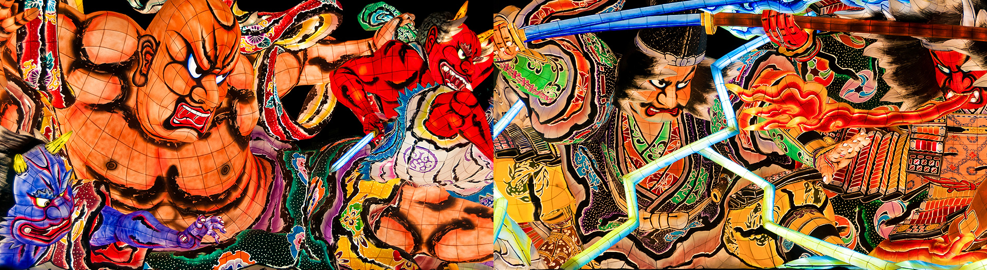 東北三大祭りのひとつで、国の重要無形民俗文化財にも指定されている青森ねぶた祭。全国・世界各地から約270万人の観光客を迎え、華やかに開催されます。日が暮れると巨大なねぶたに明かりが灯され、その周りを色とりどりの衣装を身につけた踊り子のハネトたちが、「ラッセーラ」の掛け声を上げながら踊り歩きます。神話や歌舞伎などをモチーフに制作されたねぶたの大きさは高さ約5m、幅約9m。細部まで緻密に表現されたデザインが魅力で、睨みをきかせた迫力ある表情に圧倒されます。太鼓や笛の音に合わせて数千人ものハネトが躍る熱狂を体感してください。