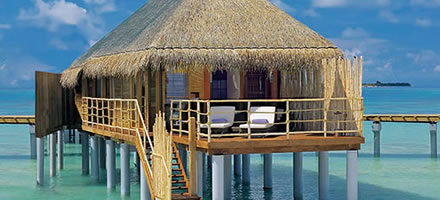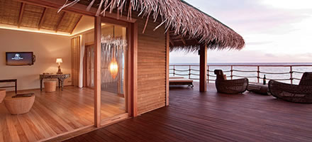 シニア水上ヴィラ 桟橋からより沖へ近いロケーションの水上ヴィラ。干潮時には現像的な砂洲が見れることも。