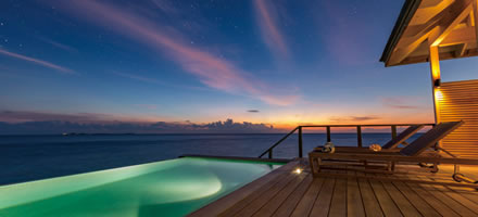 プール付オーシャンサンセットヴィラ 部屋の造りはオーシャンヴィラと同じですが、テラスにはプライベートプール付サンセット側指定。