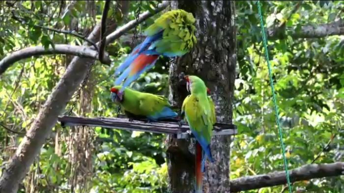 コスタリカのコンゴウインコは4羽も集まってくれて、じっくり観察できました。