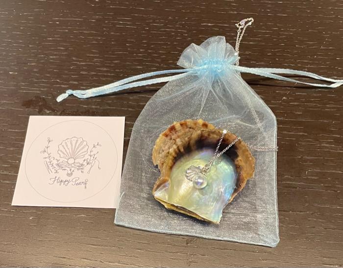 パソコン越しではありますが、自分であこや貝や好みのアクセサリー、チャーム等を選ぶ事ができて、とても楽しかったみたいです。自分で選んだあこや貝から出てきた真珠を見た時の娘の顔はとても嬉しそうでした。