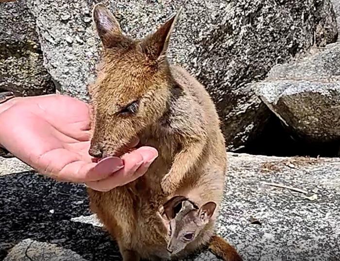 そのうち、ガイドさんがうまくエサを上げることに成功。じっくりワラビーを見ることができました。