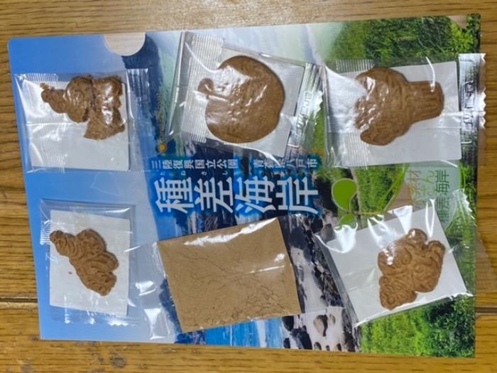 送っていただいた縄文クッキーは、1枚見事に割れていて、土中から発見された土偶のようでした。それはそれで、破片を合わせてみるのが発掘体験のようで、面白かったです。