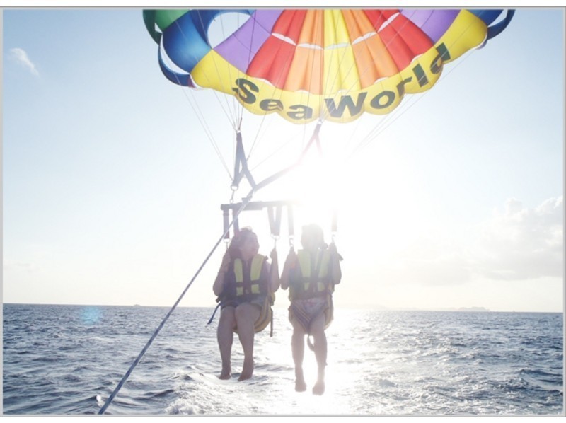 - ※パラセーリングは当日の波、風の状況と体重の関係によって安全管理のため1~4名乗りをスタッフが判断します。可能な限り同グループゲスト様同士でのフライトを調整しますが、場合によってはスタッフや他のゲスト様との同乗をお願いする場合がありますことをご了承ください。