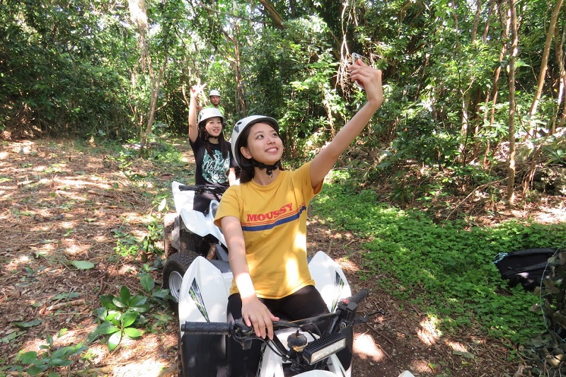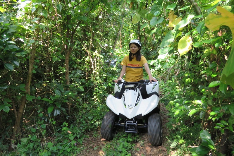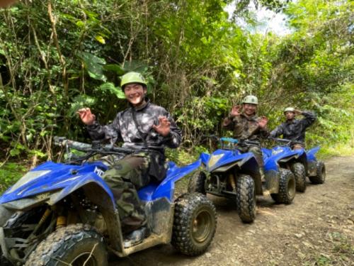 四輪バギーに乗って、ガイドと一緒に