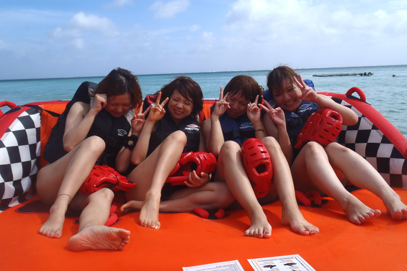 ツアーコード:LSMF1400 南城市/バナナボート&ビックマーブル&バンドワゴン&ジェットスキー+グラスボート 1日6便から選べる(Fコース) バナナボート&ビックマーブル&バンドワゴン&ジェットスキー+グラスボート/5便 開始時間:14:00