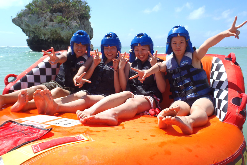 ツアーコード:LSME1300 南城市/バナナボートでシュノーケリング+ビッグマーブル 1日6便から選べる(Eコース) シュノーケリング+ビッグマーブル/4便 開始時間:13:00